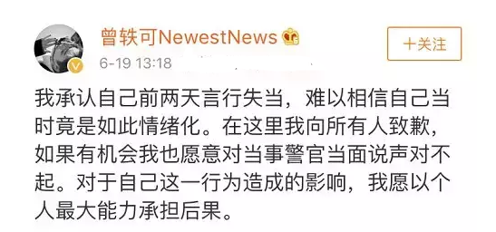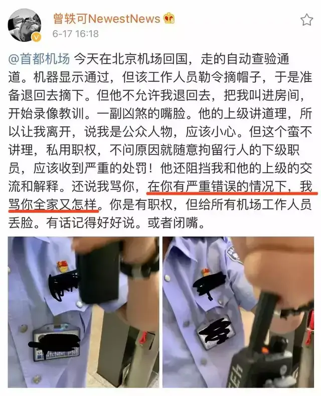 最終的結(jié)果,北京邊檢站總站進(jìn)行了整體情況通報(bào),并指出曾軼可不配合工作且爆粗口,爆出警察的照片和信息的行為也十分不妥。