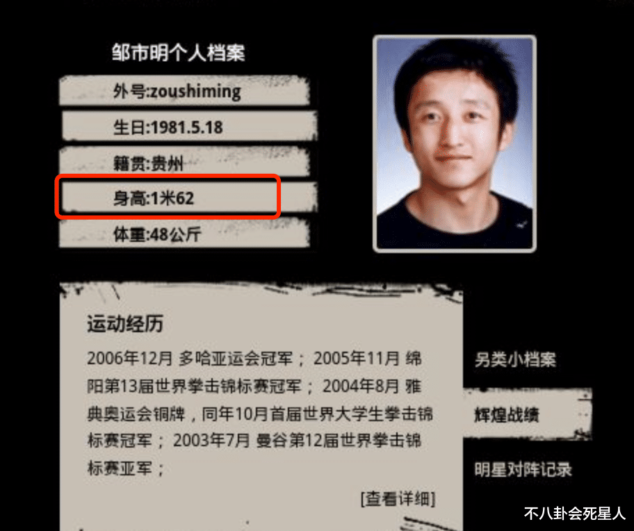 鄒市明是運(yùn)動(dòng)員,他的官方身高是1米62,運(yùn)動(dòng)一般不會(huì)身高造假的。某次活動(dòng)中,甄子丹與鄒市明同框,兩人的身高旗鼓相當(dāng),甄子丹略高一點(diǎn)點(diǎn),預(yù)估真實(shí)身高就在1米65左右。他跟郭富城差不多高。