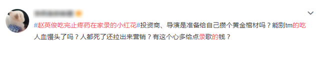 很快這種騷操作被網友質疑是吃人血饅頭:“投資商、導演是準備給自己攢個黃金棺材嗎?能別tm的吃人血饅頭了嗎?人都死了還拉出來營銷?有這個心多給點錄歌的錢?”