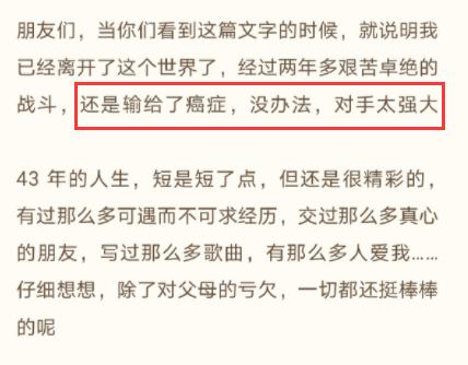 “朋友們,當你們看到這篇文字的時候,就說明我已經離開了這個世界,經過兩年多艱苦卓絕的戰斗,還是輸給了癌癥,沒辦法,對手太強大。”
