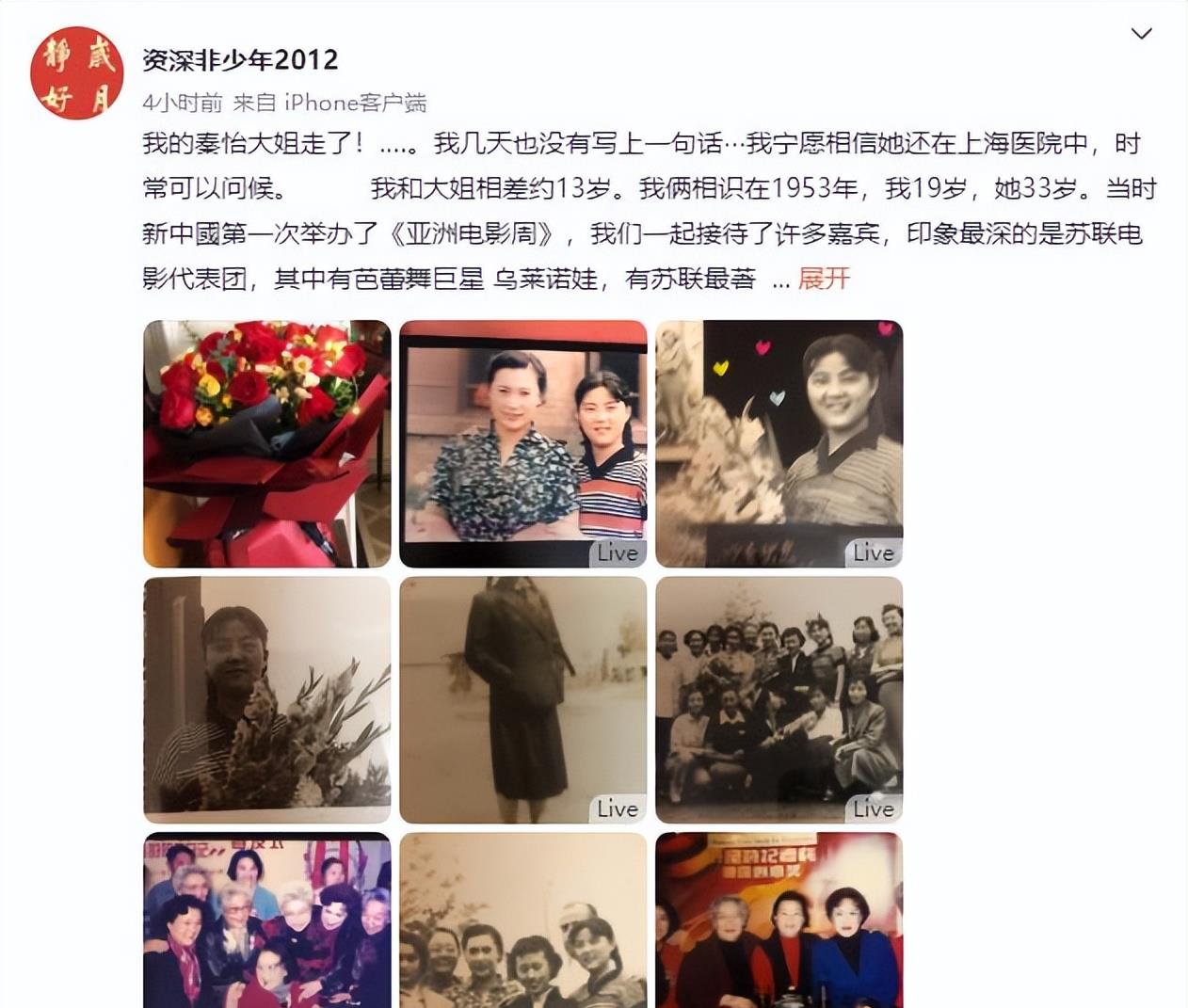 在王靜珠的文字后,許多網(wǎng)友留言,@于是無爭sowhat:好珍貴的留影;@2202的雙子:都很美;@歐咿歐咿喲:一段難忘的友情;@單鏡頭視界:珍貴的歷史資料;@怡路心情:秦奶奶一生坎坷,卻活出了不一樣的人生;@做我自己abc:那天早上剛醒,看到秦怡老師的粉絲群里還有其他自發(fā)組織的老藝術(shù)家粉絲群里發(fā)的,真的一時間好蒙,我都不敢相信,怎么會?隨后鋪天蓋地媒體發(fā)的,我才反應(yīng)過來是真實的,雖和秦怡老師未曾見過面,但一直很敬佩她,愿秦怡老師一路走好!