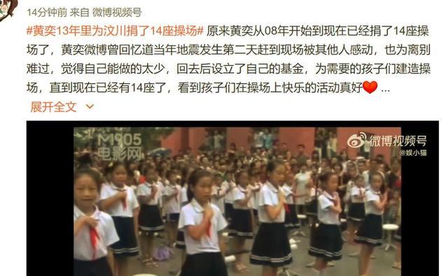 在汶川地震發生后,黃奕感慨自己能做的事情實在是太少了,他的情緒相當復雜。而從汶川趕回后,黃奕就在籌備基金會,他這么多年以來總共用基金會和自己的力量為汶川建造了14座操場。可以說,黃奕是最把汶川記掛在心上的明星,且她的付出都是默默的。