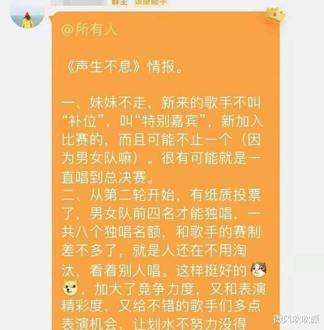第二,除了邀請特別嘉賓,節目還將在賽制上進行完善,后面的節目即將開啟紙質投票環節,每輪公演得票前四名的歌手(男女歌手各四名),將獲得更多的舞臺,也就是有機會演唱更多的歌曲。這就解決了沒有淘汰制的問題,歌手們為了獲得更多的榮譽,勢必會卯足力氣展現自己,競演也會越來越精彩。