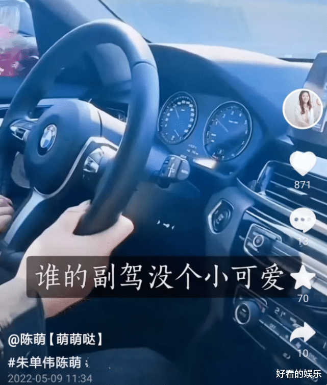 從曬出來的圖片中能看到,陳萌專門錄制了一個“誰的副駕沒個小可愛”的視頻,特意將寶馬的標志拍了下來,三歲小孩都知道她提新車了。