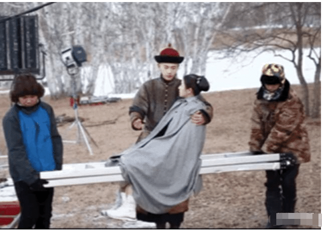 之前知名演員李蘭迪拍戲的時候,被工作人員抬著走的照片,也是在網絡上走紅,照片之中的男演員抱著她,但是李蘭迪身下坐著梯子。