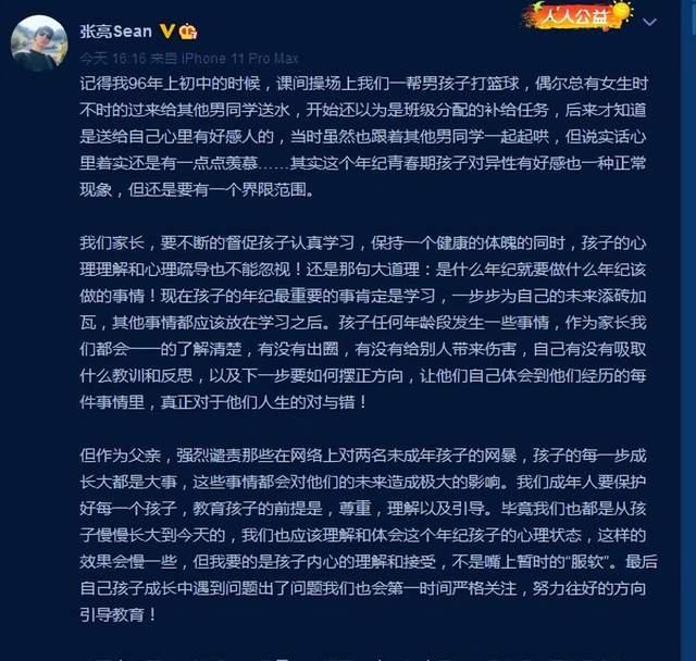 如果張亮不是明星,他的兒子天天也不是公眾人物,問(wèn)題還好解決,家長(zhǎng)能夠掌控局面呢,該引導(dǎo)的引導(dǎo),該教育也不含糊。