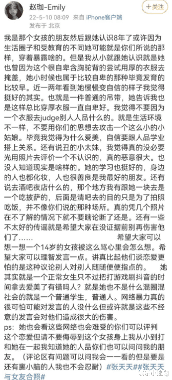 在她的發文中,我覺得對天天女友唯一有用的話就是“請停止對她的網暴”,其余的話我反而覺得這位女生是在蹭流量,不過說到底她是為了女生著想,所以沒啥可說的,不過在女生的回應下,卻有網友在進行爆料。