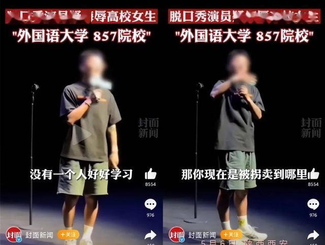 一次普通的觀眾互動,引出針對西外大的輿情;這是娛樂公司與西外大都是沒有想到的;主要是涉事演員演得太過了;針對性也太強了。別人的學校怎么樣,不是你在公眾場合可以拿來開涮的,特別不能發出帶有貶低侮辱性的話語。“被拐賣到哪里”是對女性最大的傷害,不管出于什么樣的目的,都是嚴重傷害別人感情的事情。