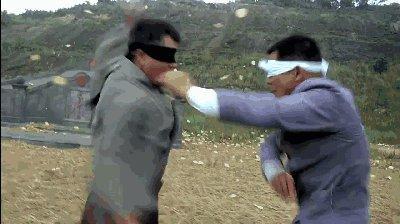 之后陳真表示不愿意占便宜,因此整部電影中最經典的一幕開始,兩人都用手絹蒙上了眼睛,開始“盲斗”。