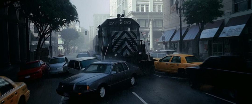 為拍攝這場火車撞車的戲,導(dǎo)演是真的去拉了一輛10噸重的火車到洛杉磯街頭,再封了路把這個拍完的。