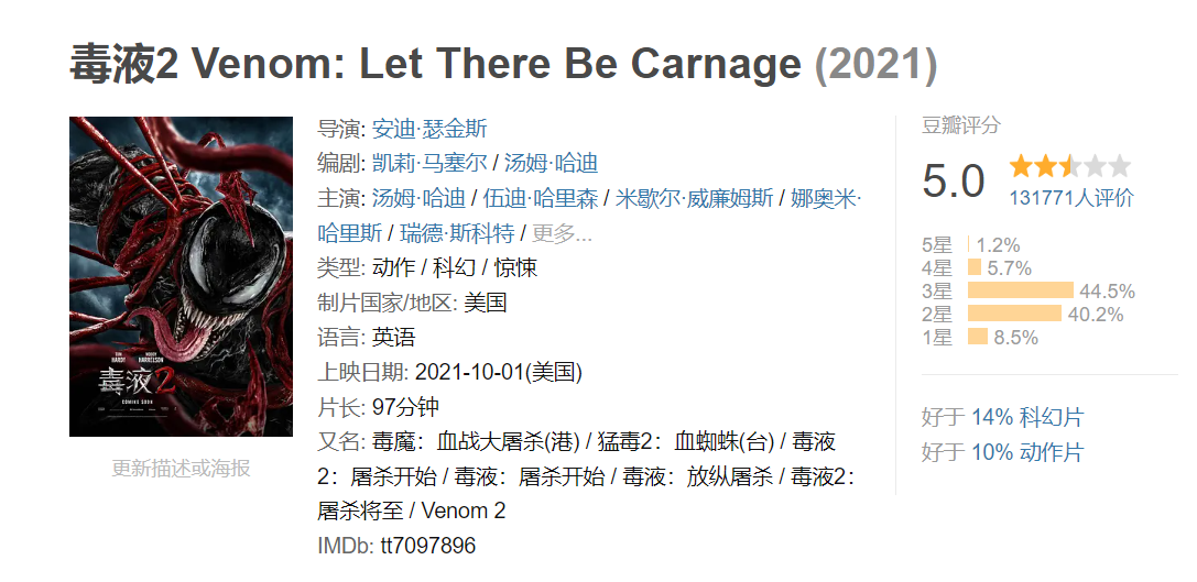 索尼趁熱打鐵,兩部續(xù)集火速上馬,第二部《蜘蛛俠:縱橫宇宙》定檔于2023年6月2日上映,第三部原來名字是《蜘蛛俠:縱橫宇宙(下)》,目前已改名為《蜘蛛俠:超越宇宙》,定檔于2024年3月29日上映。續(xù)集中,新的蜘蛛俠“蜘蛛俠2099”將登場,蜘蛛女杰西卡也會加入。還有《毒液》系列,雖然去年的《毒液2》劇情拉胯,口碑糟糕,但票房卻不拉胯,依然取得了5.06億美元的全球票房,雖然不如前作,但也讓索尼小賺了一筆。