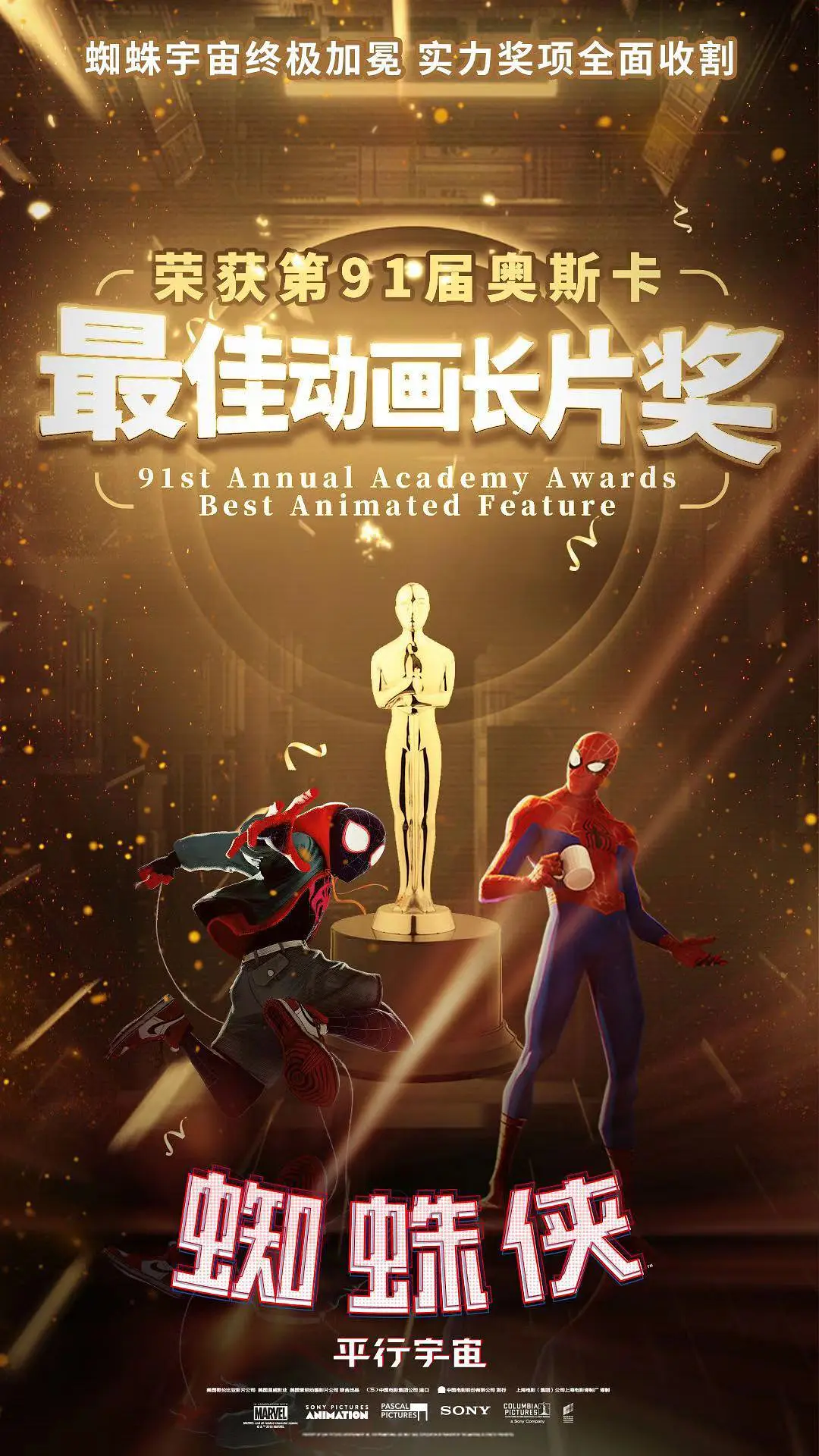 2018年上映《蜘蛛俠:平行宇宙》口碑票房雙豐收,這部動畫當(dāng)年也引進(jìn)中國內(nèi)地了,成為當(dāng)年內(nèi)地元旦檔動畫片票房榜第一名,也榮獲了第91屆奧斯卡最佳動畫長片獎。