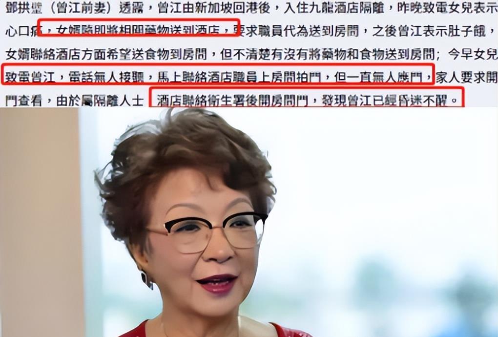 曾江因為檢疫原因,正在酒店隔離,是女婿專門將要給他送去的。不久后,他肚子又餓,也是女婿想辦法,聯系酒店人員送食物??梢娺@個時候,曾江的身體問題不大,吃飯正常。女兒去探望時,也沒有任何異樣,檢驗結果是陰性,只需要到了隔離時間后離開就行。