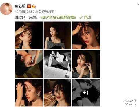 不知道唐藝昕是不是也深諳其中精髓,至少,她在微博上曬出的這一組穿著黑色小禮服的官圖,看上要正常許多。