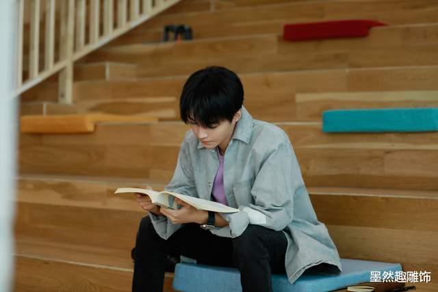 這一張則是王俊凱坐在臺階上讀書的照片,這張照片也很有感覺,讓人有一種對王俊凱眼前一亮的感覺。
