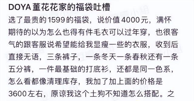董花花還學情敵張大奕帶起了貨,在不久前做了一個服裝福袋的活動,有點類似于盲盒。