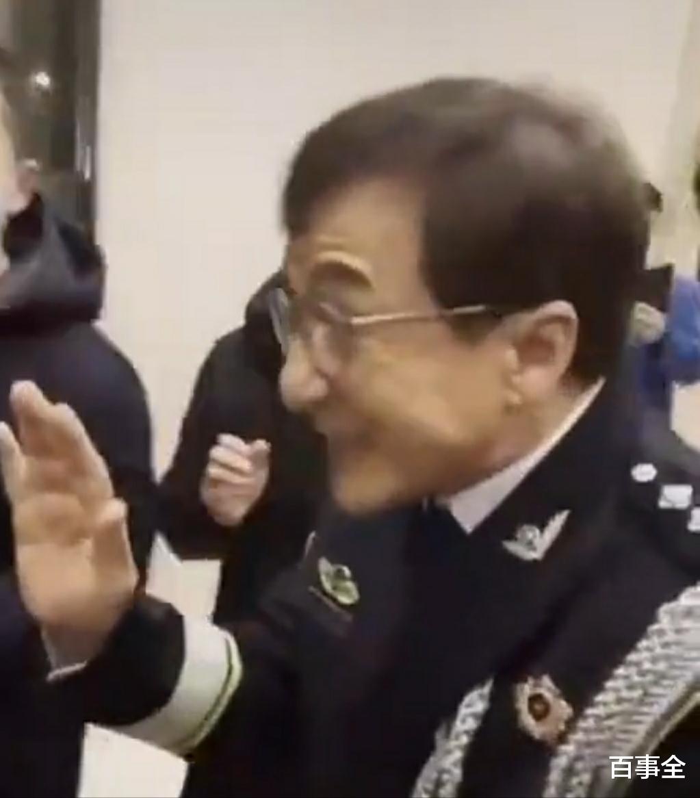 成龍大哥面對大家的拍攝,親切地揮手表示問候,笑容滿面很隨和。