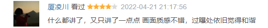 “什么都講了,又只講了一點(diǎn)點(diǎn) 畫面質(zhì)感不錯(cuò),過曝處依舊覺得和諧”