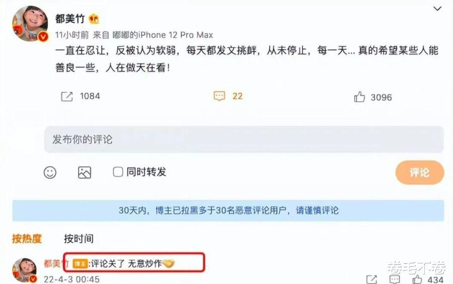 到最后,反倒是將都美竹罵到關閉微博評論。