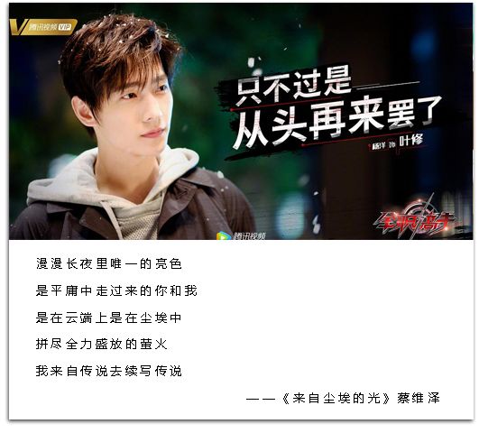 《來自塵埃的光》是電競題材勵志劇《全職高手》的片頭曲,由新晉歌手蔡維澤演唱。搖滾的曲風(fēng),極具金屬感的唱腔,完美地演繹了追夢人的不屈和倔強。