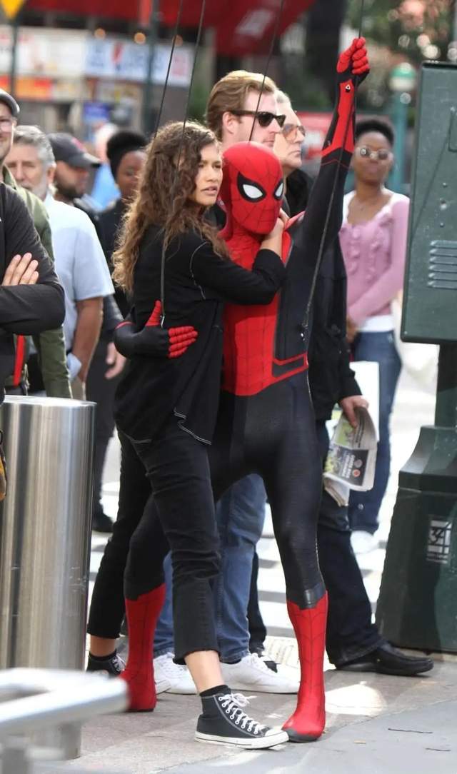 貼切電影的造型,蛛絲元素,俏皮又時(shí)尚,與湯姆赫蘭德(蜘蛛俠扮演者)合影,完全性的碾壓。