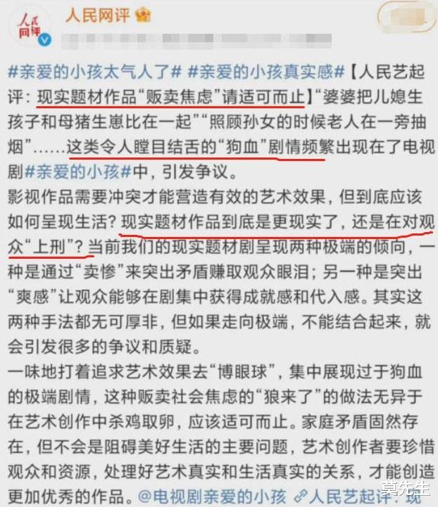 電視劇《親愛的小孩》自上線后,因劇情太過于真實(shí),五味雜陳的情感,引起了網(wǎng)友熱議,更有兩大官媒加入了討論。