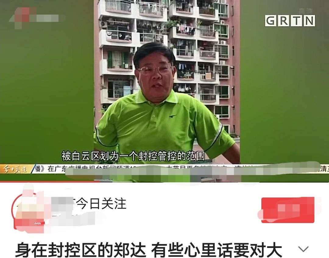 鄭達在視頻里說:“我算起來有大半個月沒有主持節目了,我看到留言都問鄭達去了哪里?其實我跟很多廣州的街坊一樣足不出戶,在家里配合防疫,因為我住的社區正好是廣州白云區的封控范圍。”