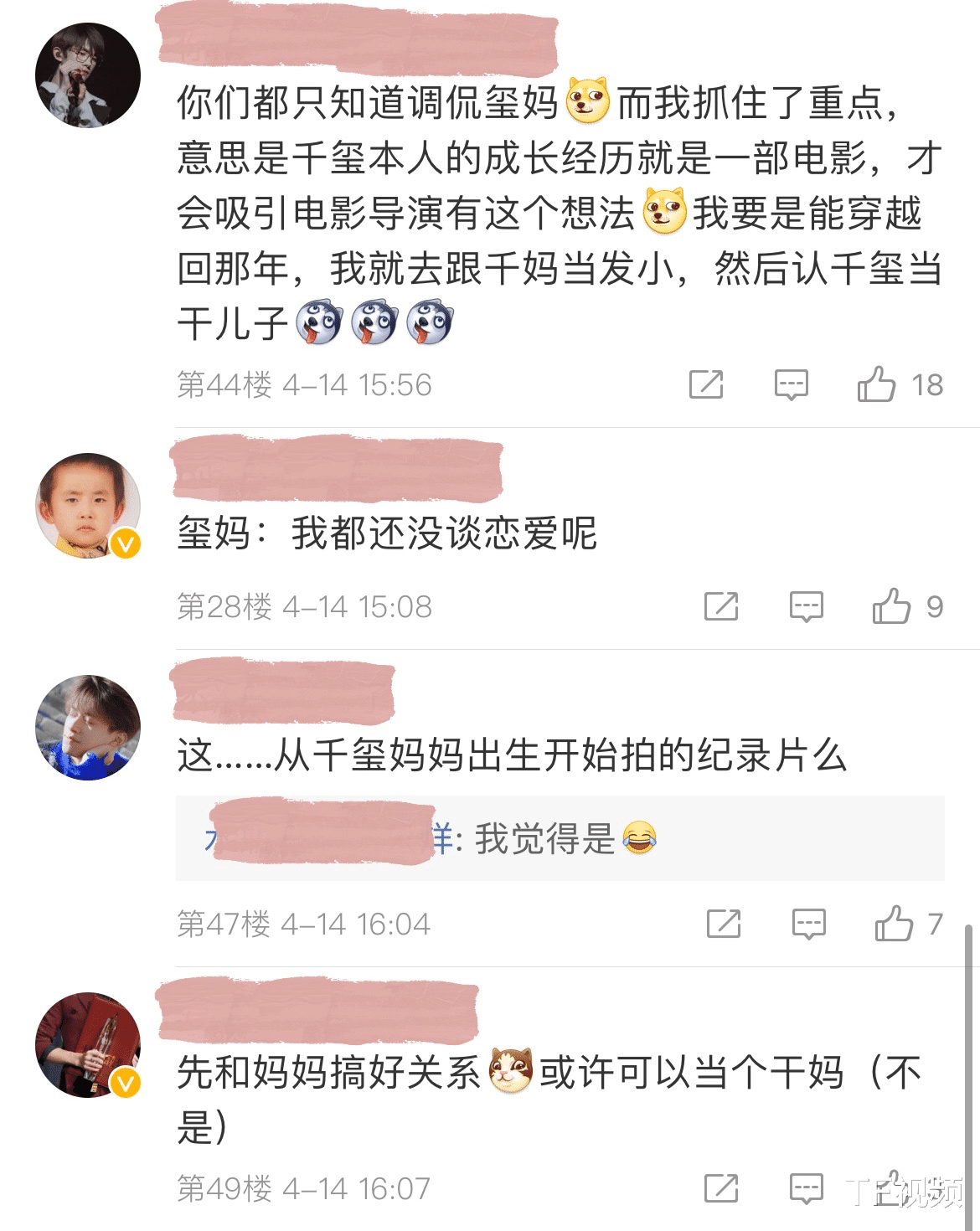 評論區有不少粉絲都在調侃千璽的媽媽,也有粉絲表達了不同角度的看法,“而我抓住了重點,意思是千璽本人的成長經歷就是一部電影,才會吸引電影導演有這個想法”,千璽的成長經歷太過波折,一路走來千璽和媽媽也共同經歷和承擔了很多,也是這些曲折蜿蜒的道路是千璽成長的最好見證。