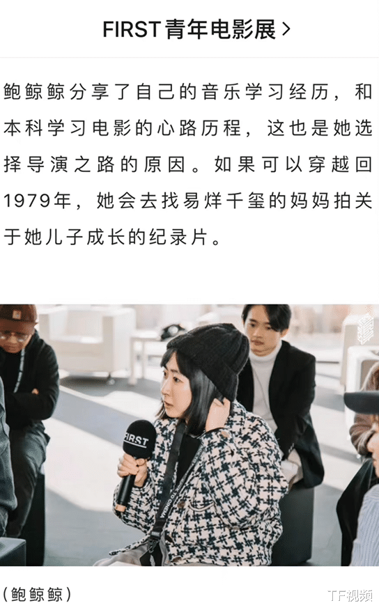 這位青年編劇首先分享了自己的音樂學習經歷和學習電影的心路歷程,但是接下來她的一個有趣想法與千璽相關,“如果可以穿越回1979年,她會去找易烊千璽的媽媽拍關于她兒子成長的紀錄片”,這個想法讓看見的粉絲驚喜,隨后截圖分享給了更多的千璽粉絲。