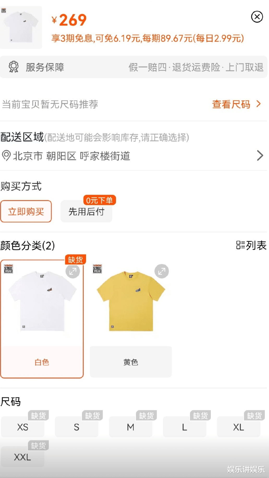 王一博的這件短袖是街頭鞋服品牌,定價并不高,是很多粉絲都能接受的,于是,官網(wǎng)買不到的粉絲,那是直接涌進了短視頻平臺的直播間詢問“王一博同款”,答案就是“沒有”,主播只能展示著另一件黃色,說著“我估計這件他也會買”,但是王一博又沒穿啊,不沖著同款來,有幾個粉絲會買?