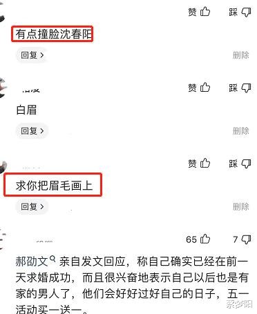 因為郝劭文的妻子是一名劇組化妝師,所以化妝技術十分高超,而在之前與郝劭文的同框照片當中,還是黑色的眉毛,所以網友才會調侃讓她把眉毛畫上。