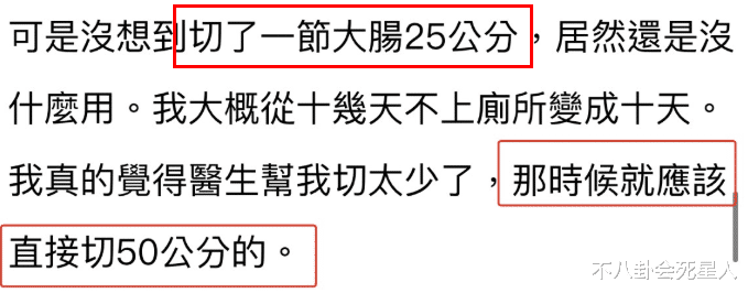 其實她并不胖,但她總覺得自己上鏡不好看,于是切掉了25公分的大腸,甚至還后悔切的太少,該直接切掉50公分的。