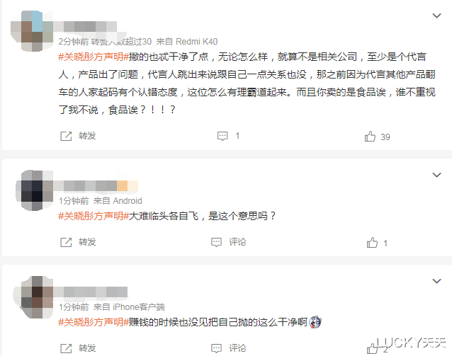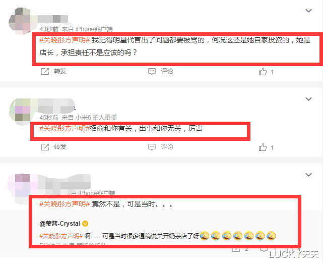 另外作為品牌代言的明星,產品出了問題到底明星有沒有責任,另外到底關曉彤與天然呆到底存在何種聯系,并沒有表明,因為在很多網友看來一直以為這是關曉彤注資的奶茶店,這也是很多網友質疑的問題。