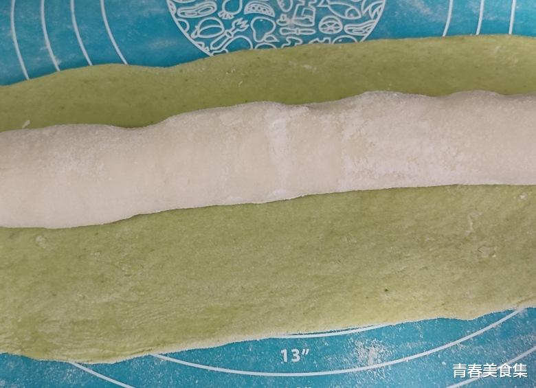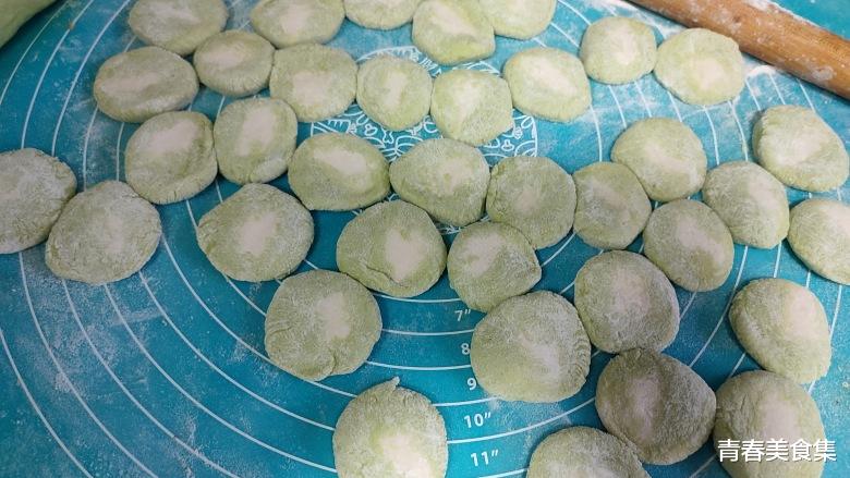 成為外面綠色色,里面白色的劑子條,揪成大小相等的劑子