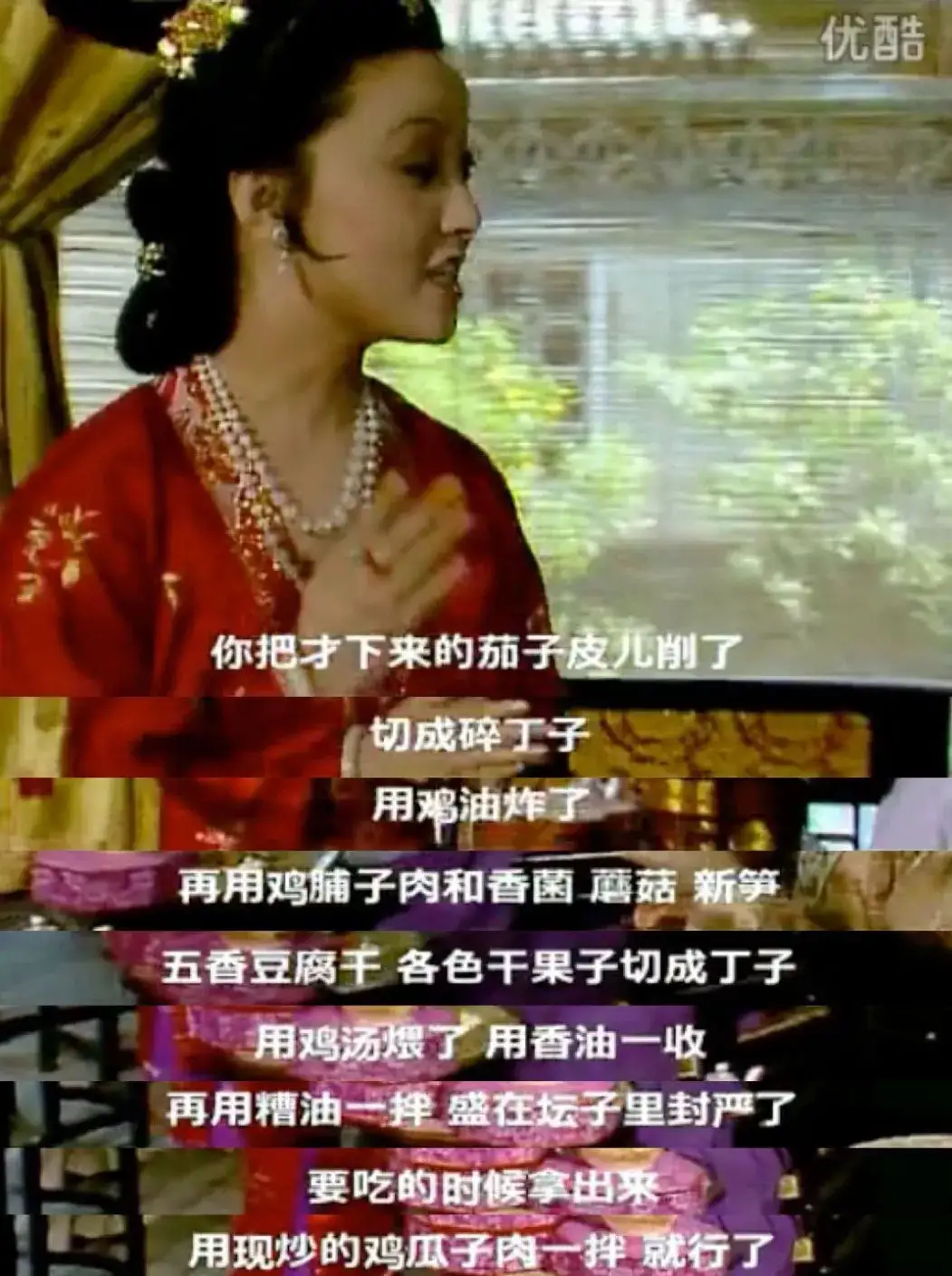 比如《紅樓夢》里最出名的“茄鲞”,做法天花亂墜,回歸本質是古人行于路途時所食用的“路菜”,特點是干、咸、耐久存。