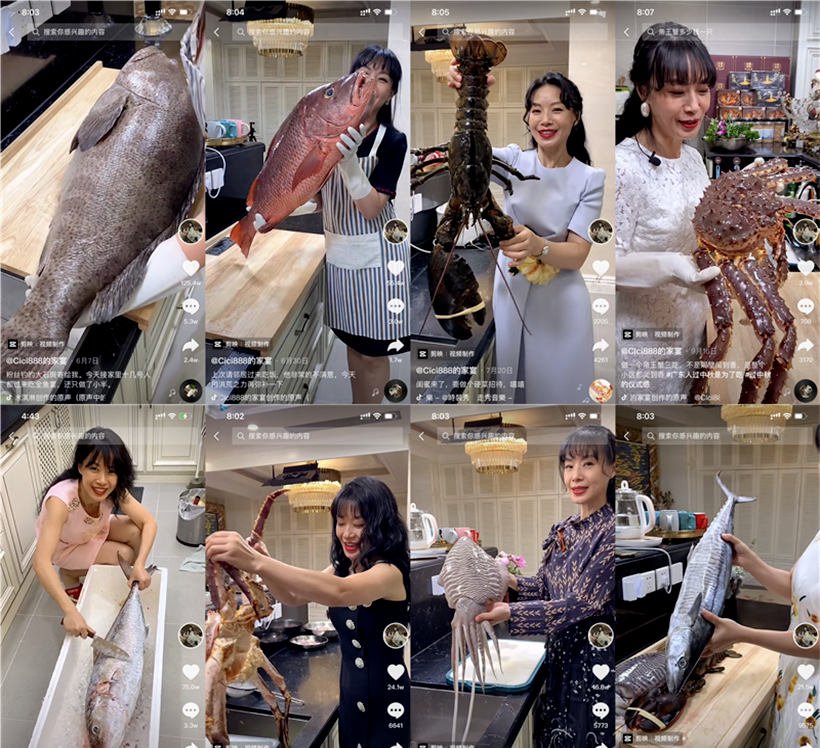 她每次出鏡都打扮的漂漂亮亮,踩著blingbling的尖頭高跟鞋,小禮服看上去就價格不菲,做了頭發(fā)化了妝,看著明明要去赴晚宴的一身行頭,cici姐卻是在廚房里熟練又麻利的殺魚剁蝦。
