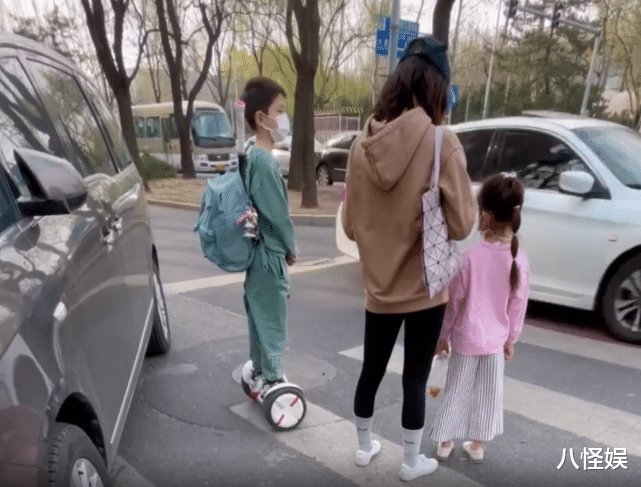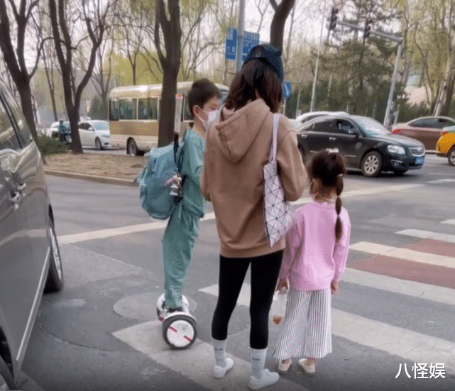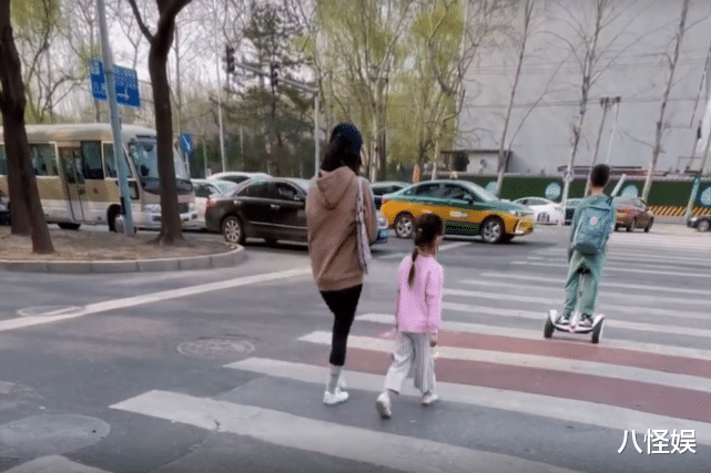 在等紅綠燈期間,陪同嗯哼和小女孩的大人不知道是不是因為有事情要溝通,基本上全程都在低著頭刷手機。綠燈之后,嗯哼拍了一下身邊的大人,然后就獨自騎著平衡車過馬路了。