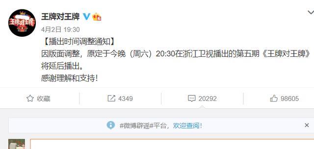 第一次,能理解,肯定不能播娛樂性質(zhì)過強(qiáng)的節(jié)目,但是第二次,說好周五播出,但是臨時(shí)通知,打算周六播出。就在網(wǎng)友等周六播出的時(shí)候,又通知,下周五播出。