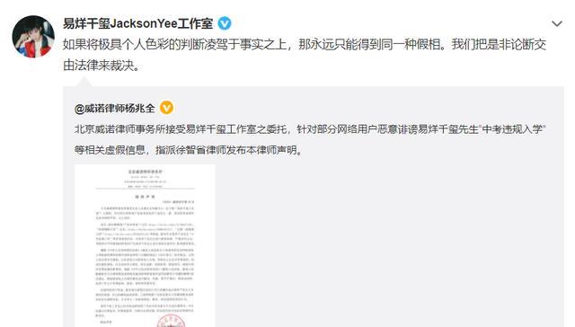 易烊千璽這邊反應迅速,都已經澄清了,還有人不相信,所以開始告那些造謠者。