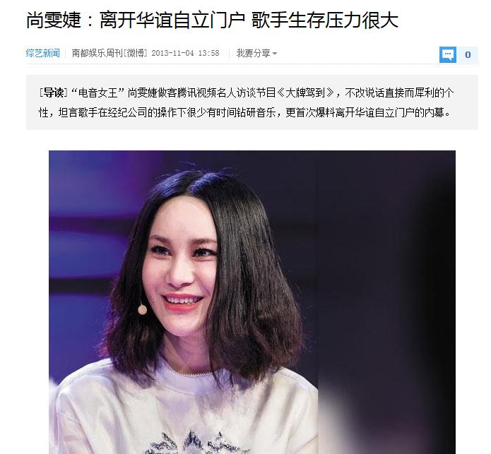 2013年,羽翼豐滿的尚雯婕離開了華誼,開始自立門戶,自己開工作室當老板。