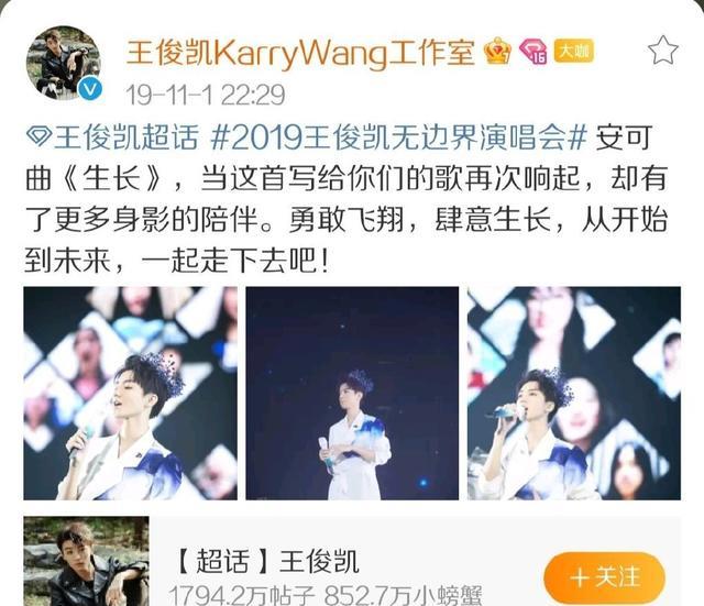 2019年個人演唱會,夾在小餅干里送給粉絲的幸運紙條,十九歲生日會退場,揮手告別……可在升降臺載著王俊凱快消失時,半個小腦袋,抿嘴委屈的小表情,淚光閃在漂亮的眼睛里,折出我未見過的光,像不舍,交織拉扯的眷戀,發(fā)自內(nèi)心的感謝,甚至是愛!