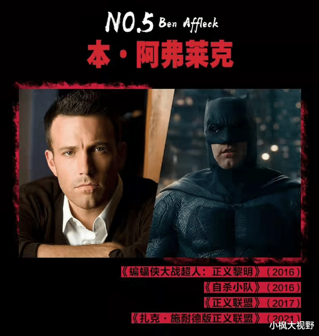 大本是目前扮演蝙蝠俠演員中最高最壯的一位,不過為了角色,他還是增重了9公斤,體脂率降到了8%。