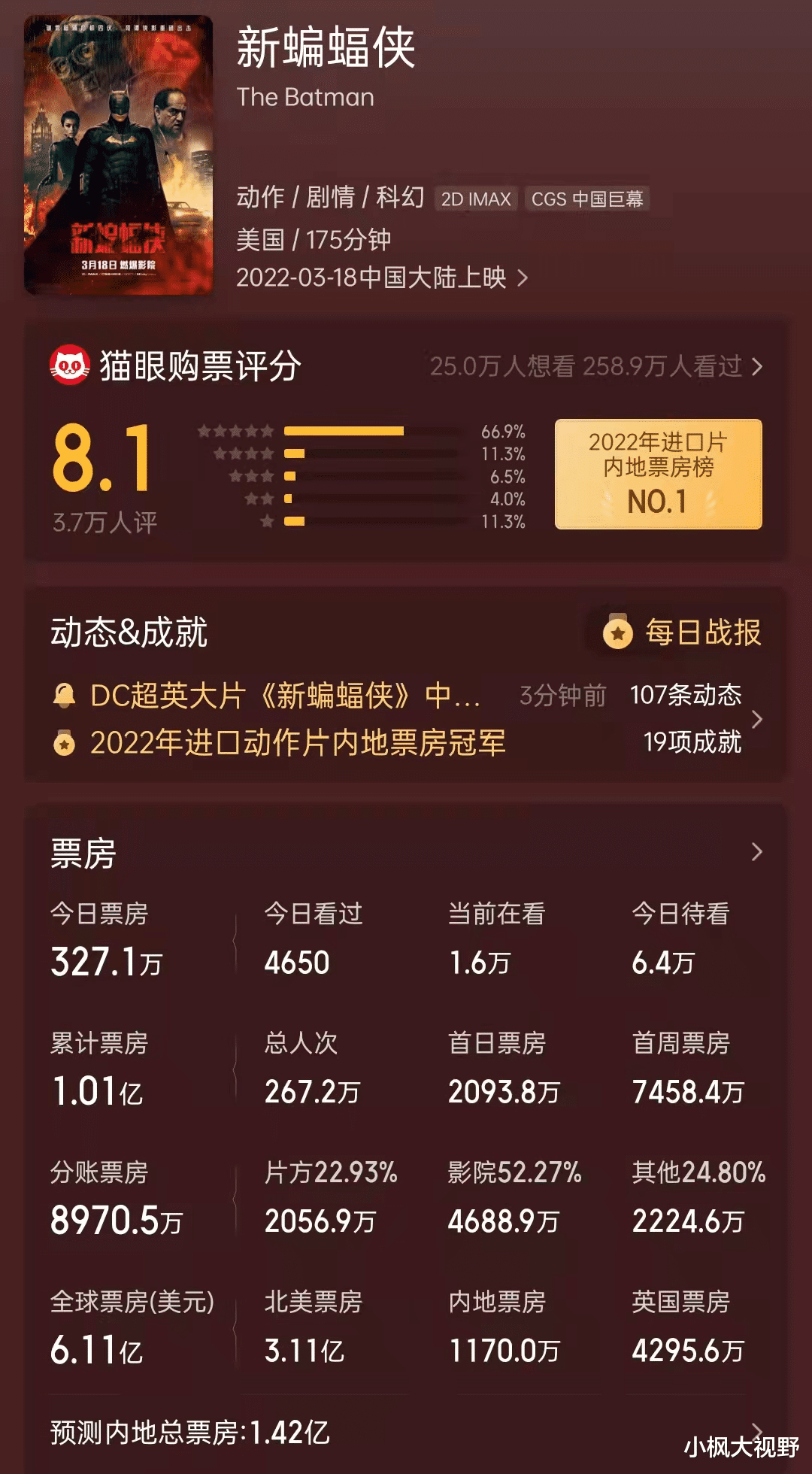 備受DC影迷期待的《新蝙蝠俠》終于在3月18日登錄中國內地院線,可惜遇上近期疫情爆發,全國超過半數影院關門,導致票房不審理想。