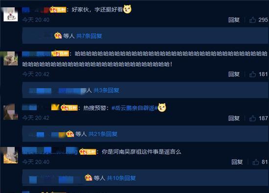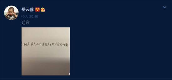 起因也是因為賈玲拍媽媽的電影今年也是爆火,于是有人開始覺得岳云鵬也會拍有關父親的電影。岳云鵬辟謠也是手寫,一張白紙上寫著:某相聲演員正在籌備關于他父親的電影。動態配文就倆字:謠言。關鍵詞“岳云鵬親自辟謠”的話題已經開始熱起來,有點意思的是,雖然他說籌備有關父親的電影是謠言,評論區的畫風卻開始跑偏。