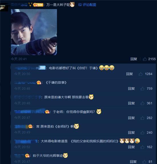 有粉絲就起哄說:萬一是大林子呢?大林子都知道是郭麒麟,要說郭麒麟籌備父親的電影也不是不可能,畢竟他父親郭德綱也值得拍部電影。只是真要說是拍郭德綱的話好像也不算話題跑偏,不少人起哄居然是在拿于謙刷屏!有人還套用賈玲的那部電影名字,直接說:電影名都想好了叫《你好!于謙》。然后就是《于謙的故事》,總之有關郭麒麟父親的話題里就離不開于謙。