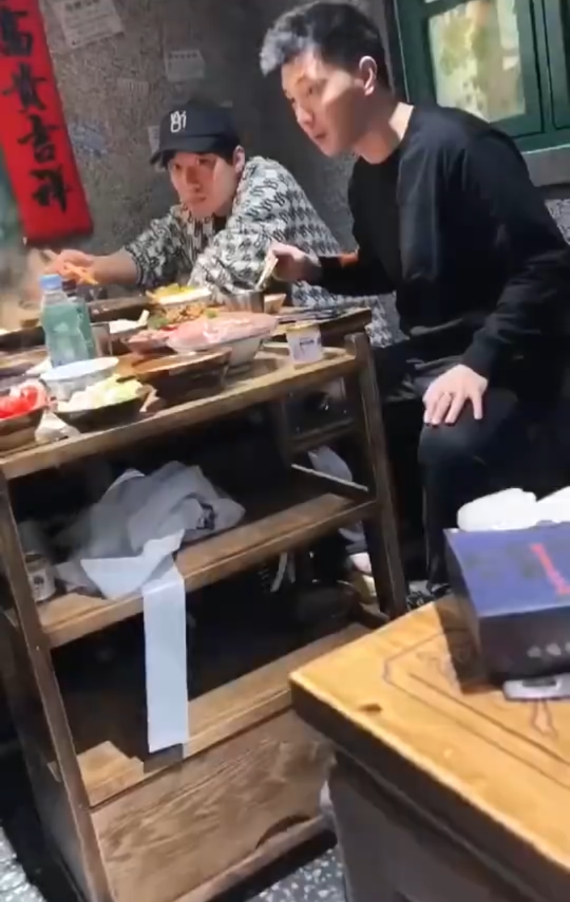 網友拍攝的時候,被何九華發現了,何九華只看了一眼鏡頭,繼續吃火鍋,并沒有干涉?;蛟S是兩人的關系已經不是秘密,就沒必要遮遮掩掩了。