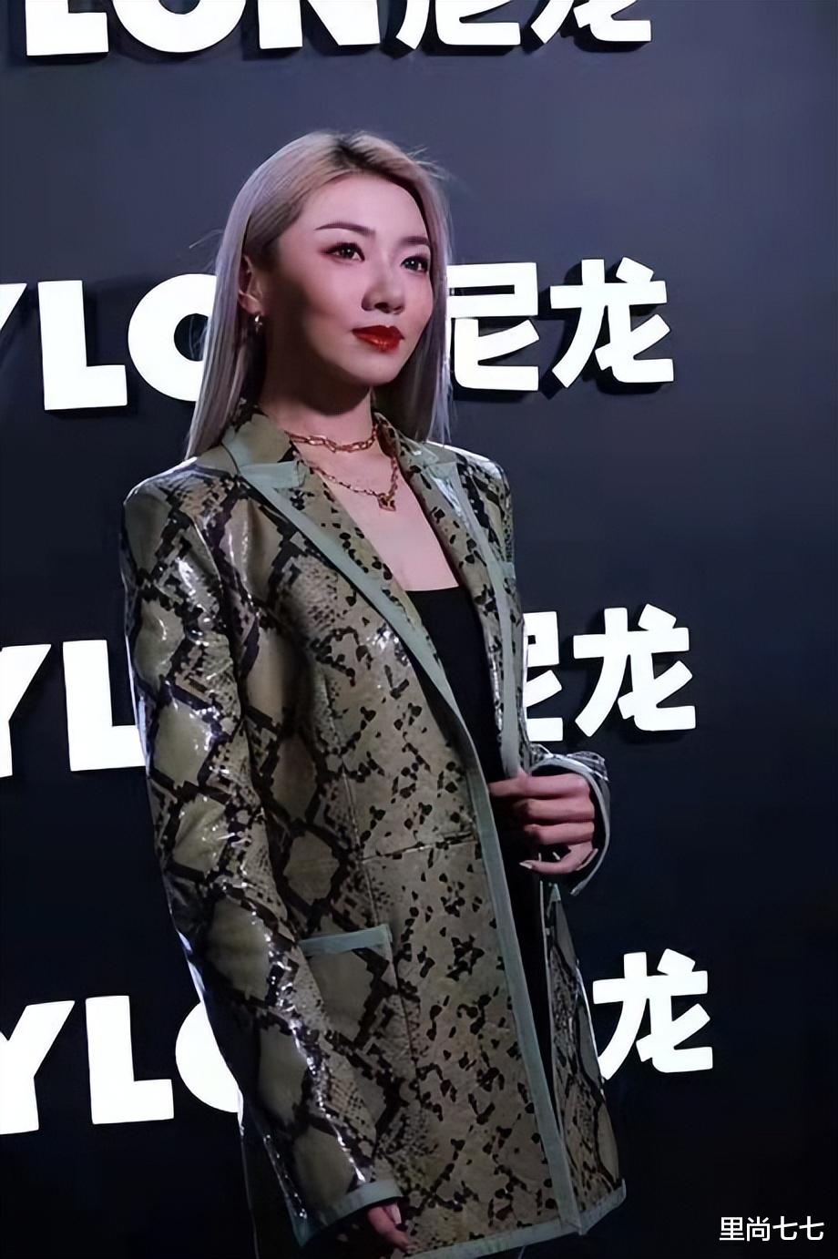 特別是在服裝背景處于暗色的情況下,再選擇黑色系西服+奇形怪狀的花紋圖案就沒有了對比鮮明的效果。我們可以看到程曉玥的外套內搭和靴子都是深色,這種基礎色過度鋪就無法打造出個人風格,反而會弱化自己的優勢,直接避開了高級感這個代言詞。