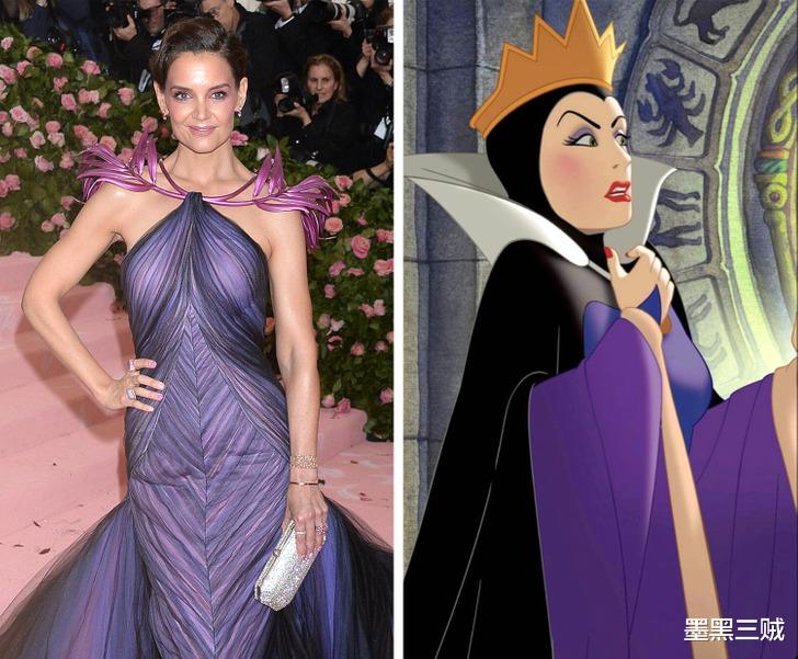 第九位:凱蒂·霍爾姆斯(Katie Holmes),向迪士尼動畫電影《白雪公主和七個小矮人》中繼母邪惡王后致敬。