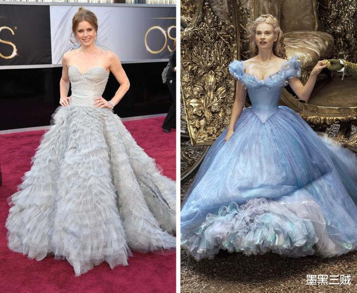 第六位:艾米·亞當斯(Amy Adams),向迪士尼真人動畫電影《灰姑娘》(Cinderella)莉莉·詹姆斯(Lily James)致敬。