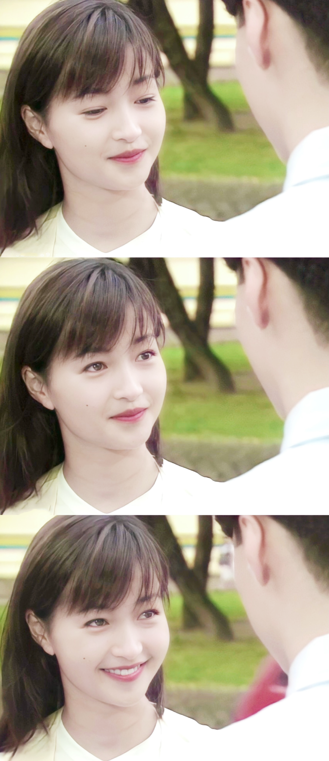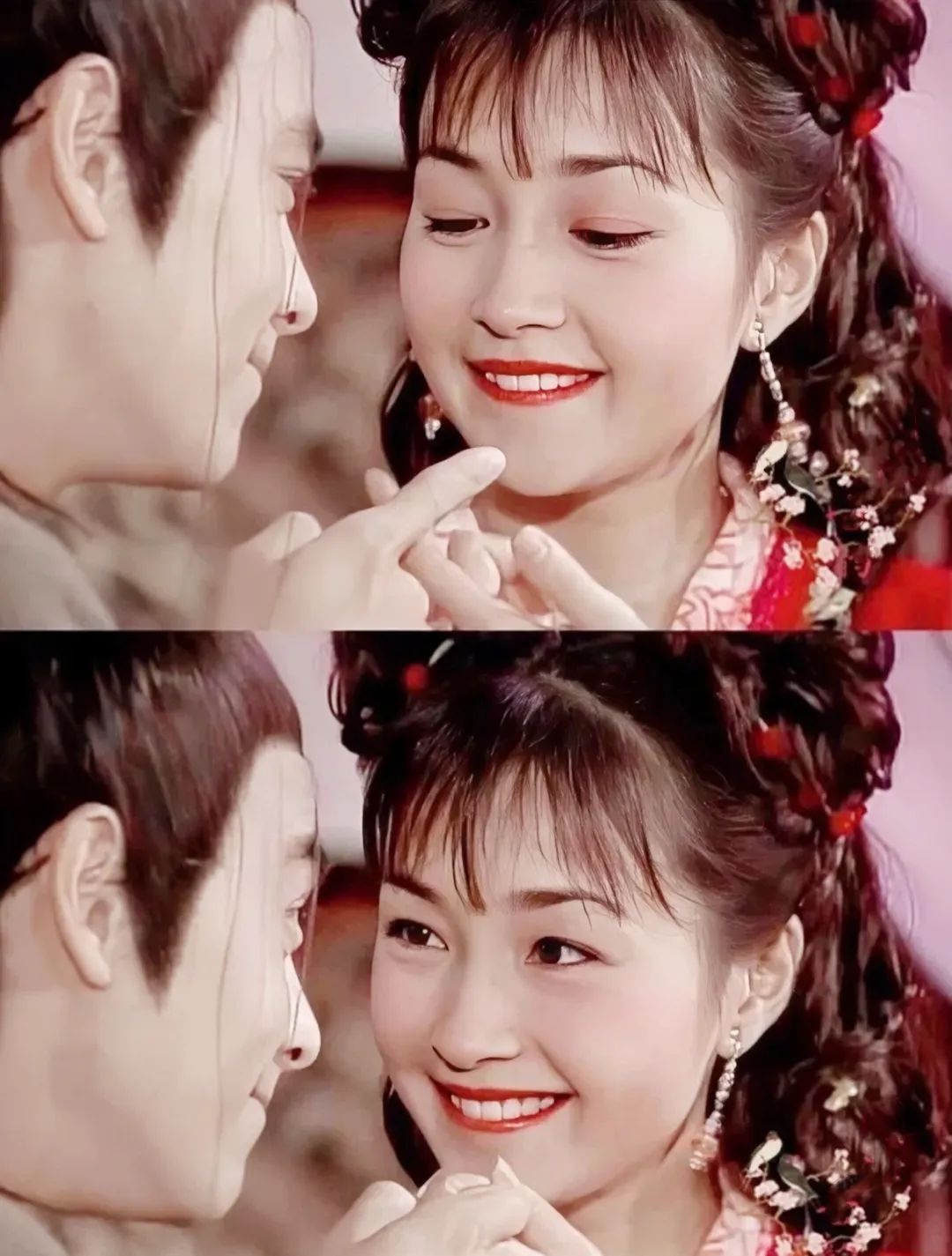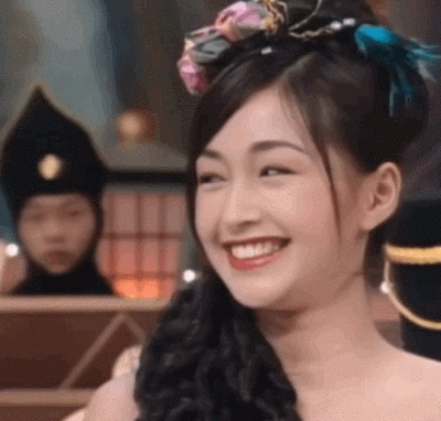 一身粉白相間的衣物,梳著古裝發型,眼睛里永遠帶著笑意。